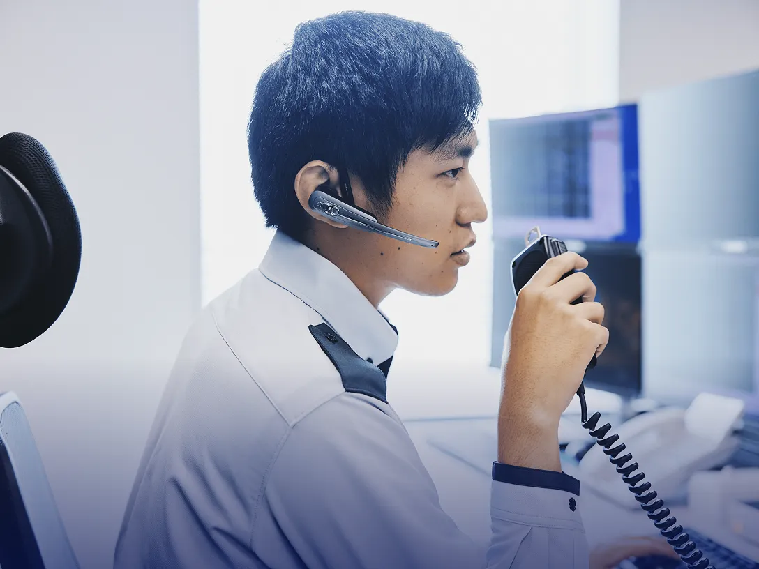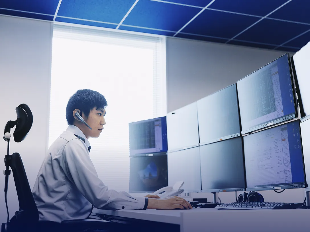 施設からの異常信号を受信・処理し、パトロール員へ出動指示を行います。あわせて、お客さまからのお問い合わせ対応も行います。