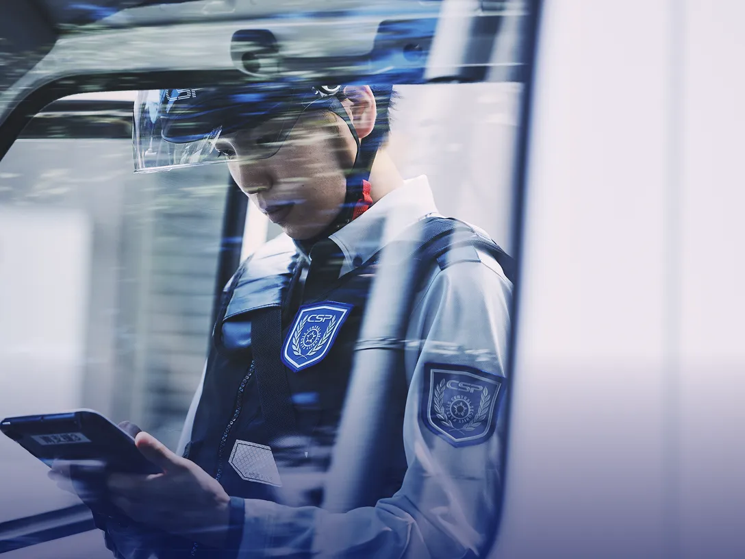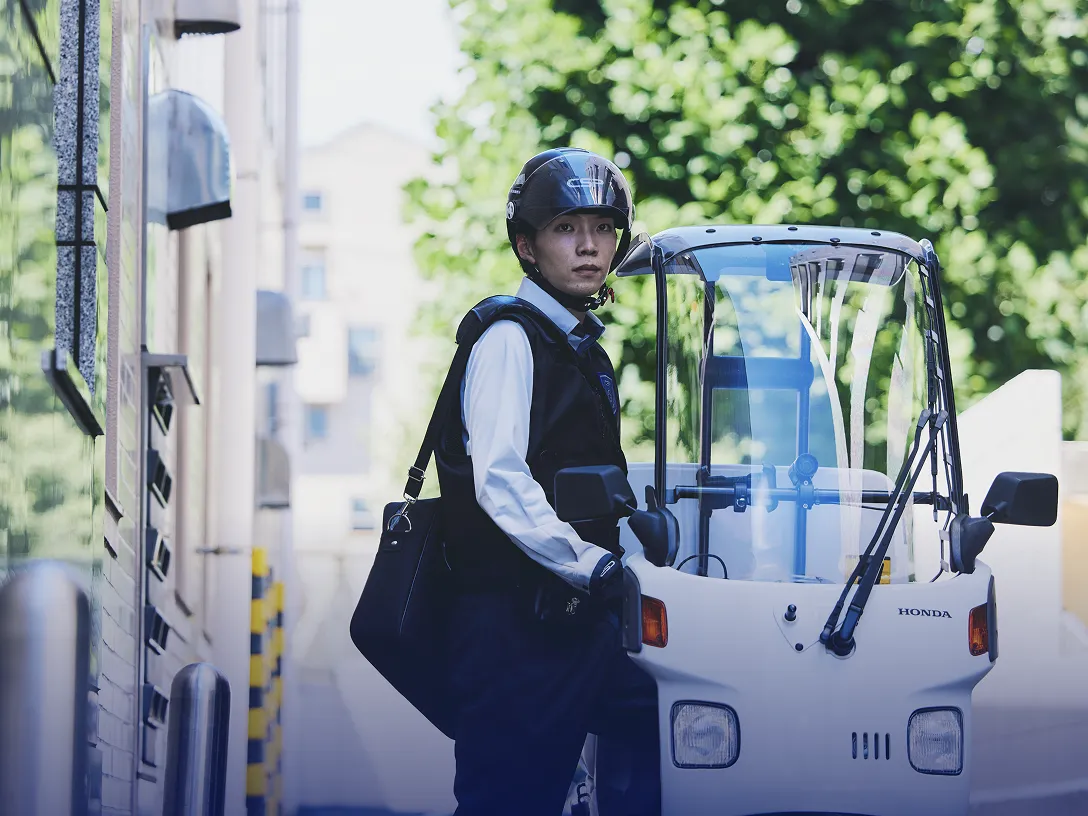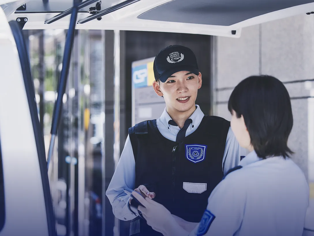 OJT研修を受けながら、お客さま対応や防犯システムの知識を修得し、“警備員”としての基礎を学びます。先輩社員が同行し、不安はすぐに解消できる環境があります。
