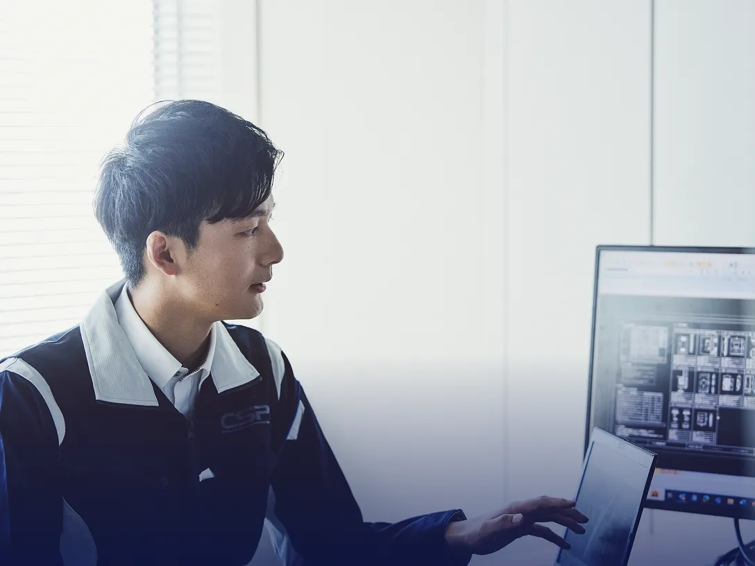 人材育成担当の指導のもと、OJTにより工事指示・保守・設計積算・事務処理などの基礎業務を身につけます。実際の現場を経験しながらスキルアップしていく段階です。