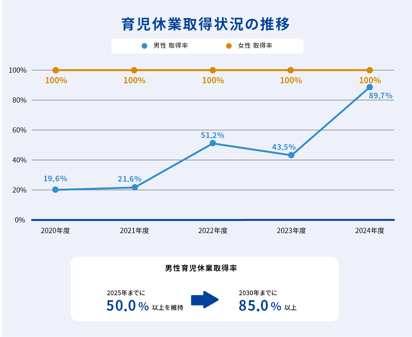 当社では育児休業、介護休業の取得しやすい職場環境の整備を推進しています。
